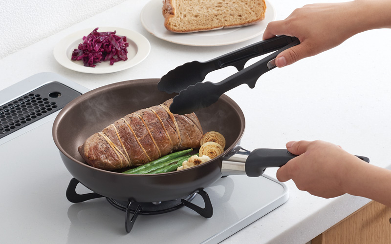 サーモスのフライパン、キッチンツールの形状に馴染むよう調整しています。
