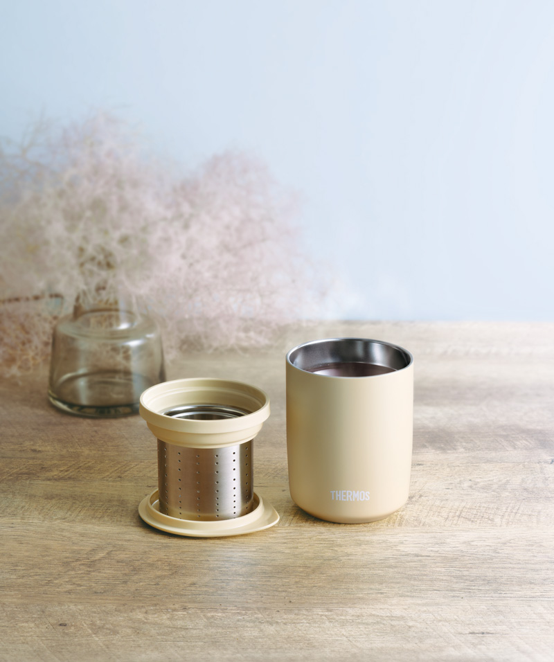ストレーナー付きで作ったお茶をそのまま保温/保冷できるタンブラー。
