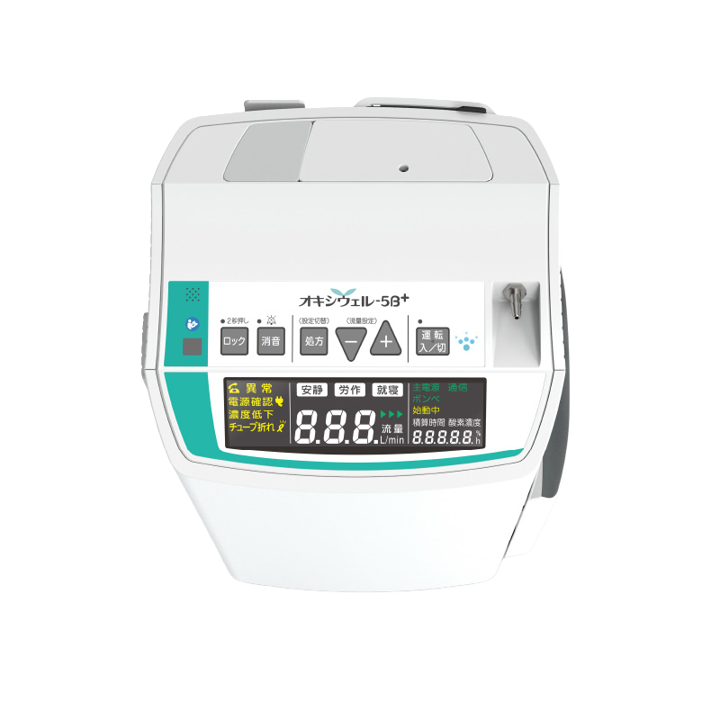 Graphic Usability オキシウェル-5B+ / 5A+ / 3A操作パネル 大陽日酸株式会社 慢性呼吸不全や肺高血圧症、慢性心不全の患者さんが、家庭で酸素吸入を行う在宅酸素療法に使用される酸素濃縮装置の操作パネルをデザインしました。