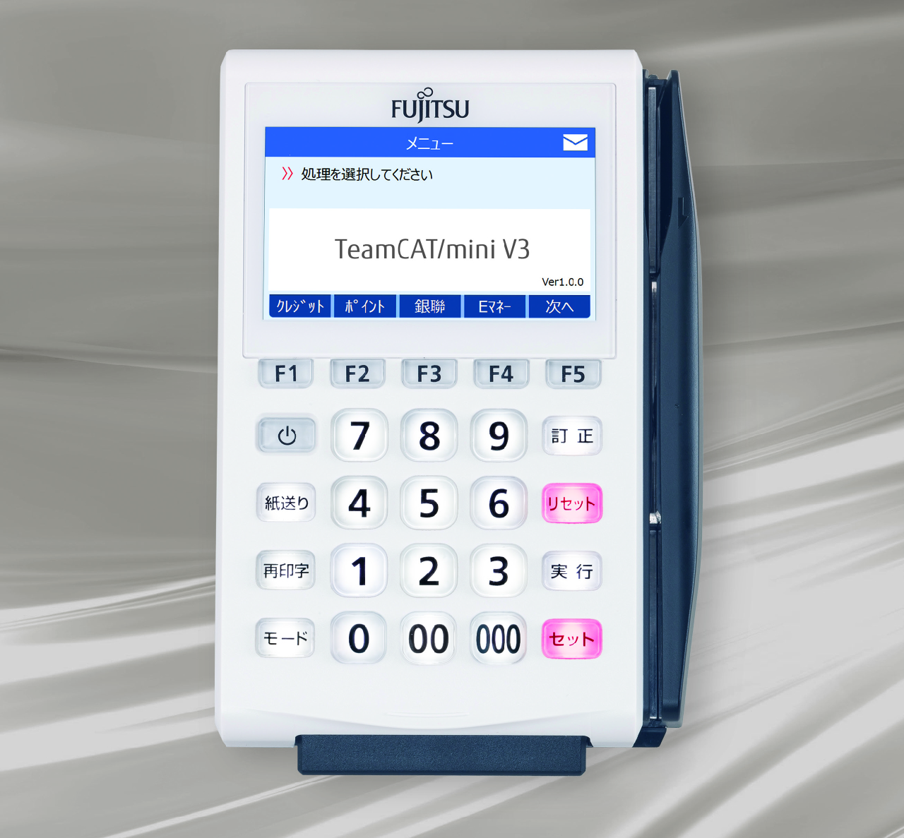 Product Interior Match Usability FUJITSU Retail Solution TeamCAT/mini V3 FUJITSU ショッピングセンターの売上報告・各種決済・ポイント管理業務を行うテナント端末。 POSレジ周りには様々な機器が設置されスペースが限られているため、 端末のコンパクト化と作業スタッフの快適な操作性の両立を目指しました。 製品ページ
