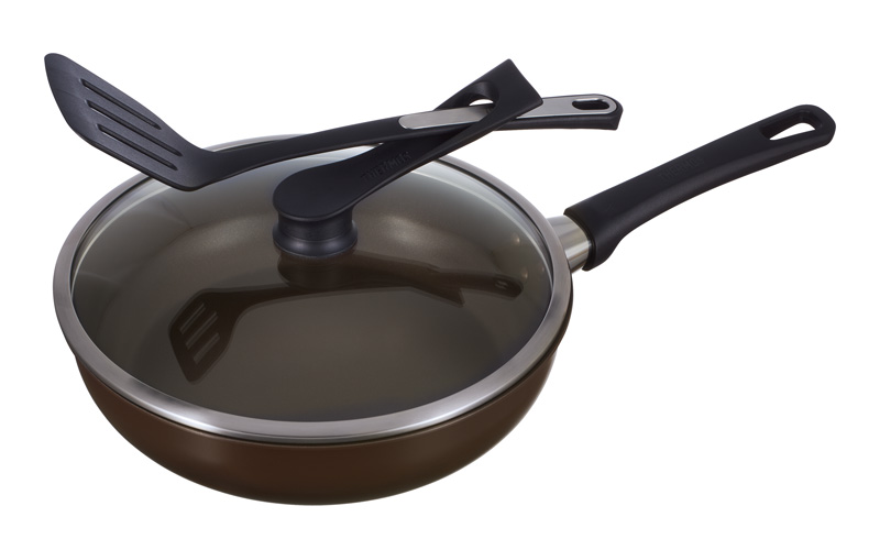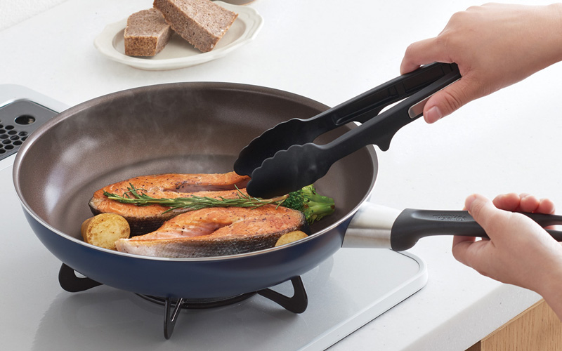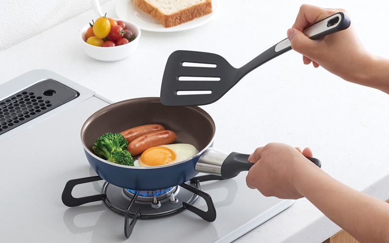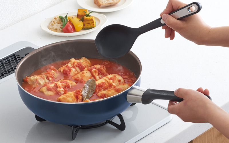 サーモスのフライパン、キッチンツールの形状に馴染むよう調整しています。